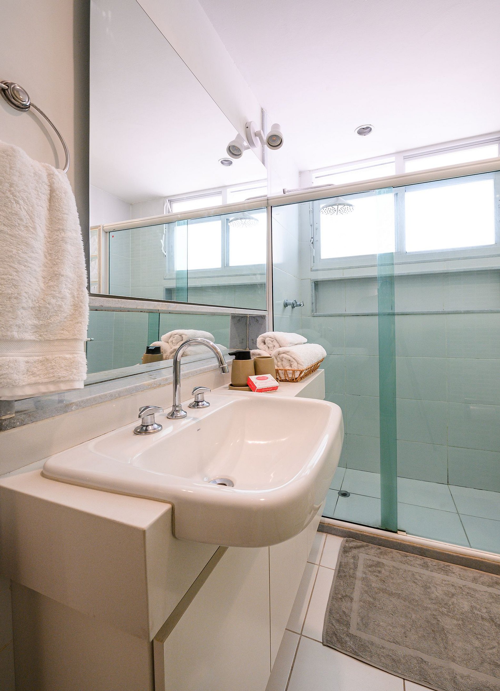 O apartamento possui 2 banheiros mas apenas 1 chuveiro.
